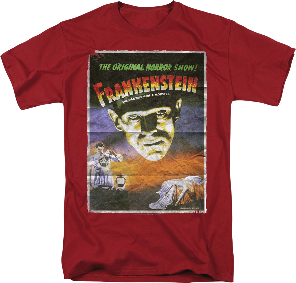 Everyone will know you are a fan of the classic that immortalized Boris Karloff as the definitive Frankenstein's Monster when you wear this Vintage Movie Poster Frankenstein T-Shirt!