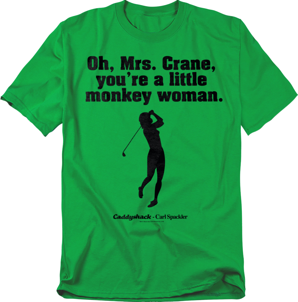 In Caddyshack, Mrs. Crane was an elderly woman who golfed at the Bushwood Country Club. The club's greenskeeper Carl Spackler watched Mrs. Crane as he stood behind bushes, and said crude things to himself like "Oh, Mrs. Crane, you're a little monkey woman."