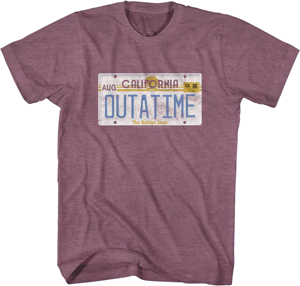 For any fan of the 1985 classic starring Michael J. Fox and Christopher Lloyd, this Vintage OUTATIME License Plate Back To The Future T-Shirt is a must have!