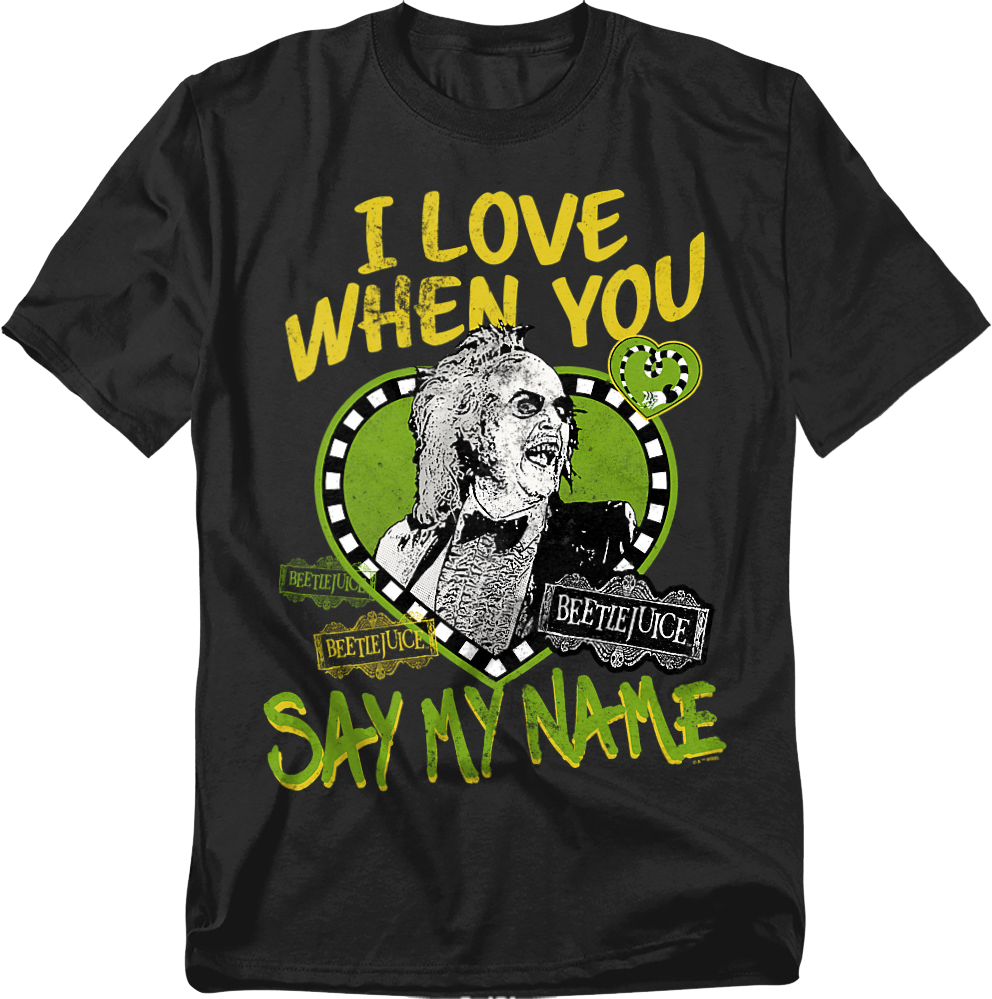 Everyone will know you are a fan of Tim Burton's 1988 classic starring Michael Keaton when you wear this Vintage Say My Name Beetlejuice T-Shirt!