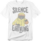 This Back To The Future t-shirt features an image of Marty McFly wearing a radiation suit and playing his Van Halen cassette tape in his Walkman. The shirt reads Silence Earthling.