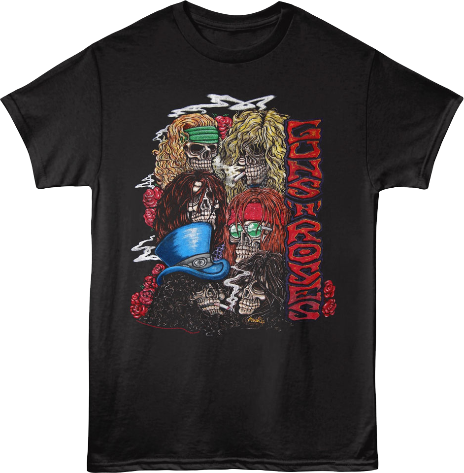 This Guns N' Roses t-shirt features the skulls of the band members that produced the hits "Welcome To The Jungle", "Sweet Child O' Mine", "Paradise City", "Don't Cry", "You Could Be Mine", "Patience" and "November Rain". Everyone will know you are a fan of the legendary band when you wear this Vintage Skulls Guns N' Roses T-Shirt!