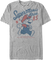 This Super Mario Bros. t-shirt shows Mario running to rescue Princess Peach. The shirt includes some of the most iconic objects in the 1985 video game, including "Coin, Super Mushroom, Fire Flower, Super Star, and 1-Up Mushroom."