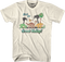 This Land Before Time t-shirt is designed to look like a prehistoric postcard that reads "Visit the Great Valley". The shirt shows Spike, Petrie, Littlefoot, Cera, and Ducky in the sanctuary for the leaf-eating dinosaurs.