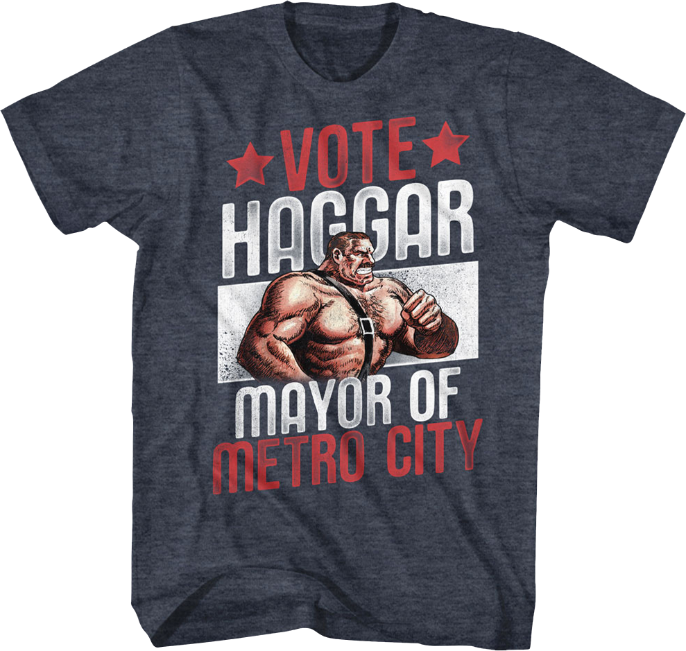There was a time before Mike Haggar was mayor of Metro City. Show that you have been always been a supporter of the dominant wrestler turned politician with this Vote Haggar Final Fight t-shirt!