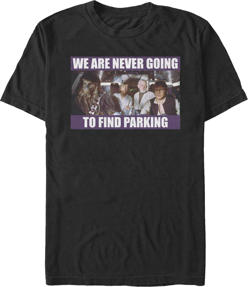 For any fan of the 1977 classic that started the greatest space saga of all time, this We Are Never Going To Find Parking Star Wars T-Shirt is a must have!