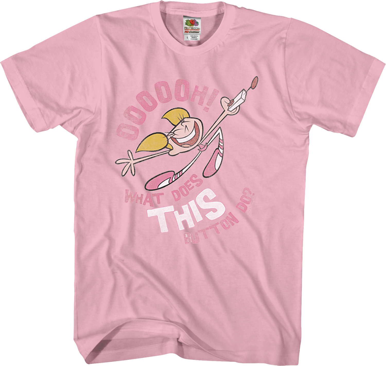 Dee Dee is instantly recognizable with her blonde pigtails, thin body, pink tutu, and pink ballet slippers. Everyone will know you are a fan when you wear this What Does This Button Do Dexter's Laboratory T-Shirt!