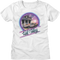 This womens Back To The Future shirt features an airbrushed image of Emmett Brown's time traveling DeLorean parked outside the Clock Tower in Hill Valley.