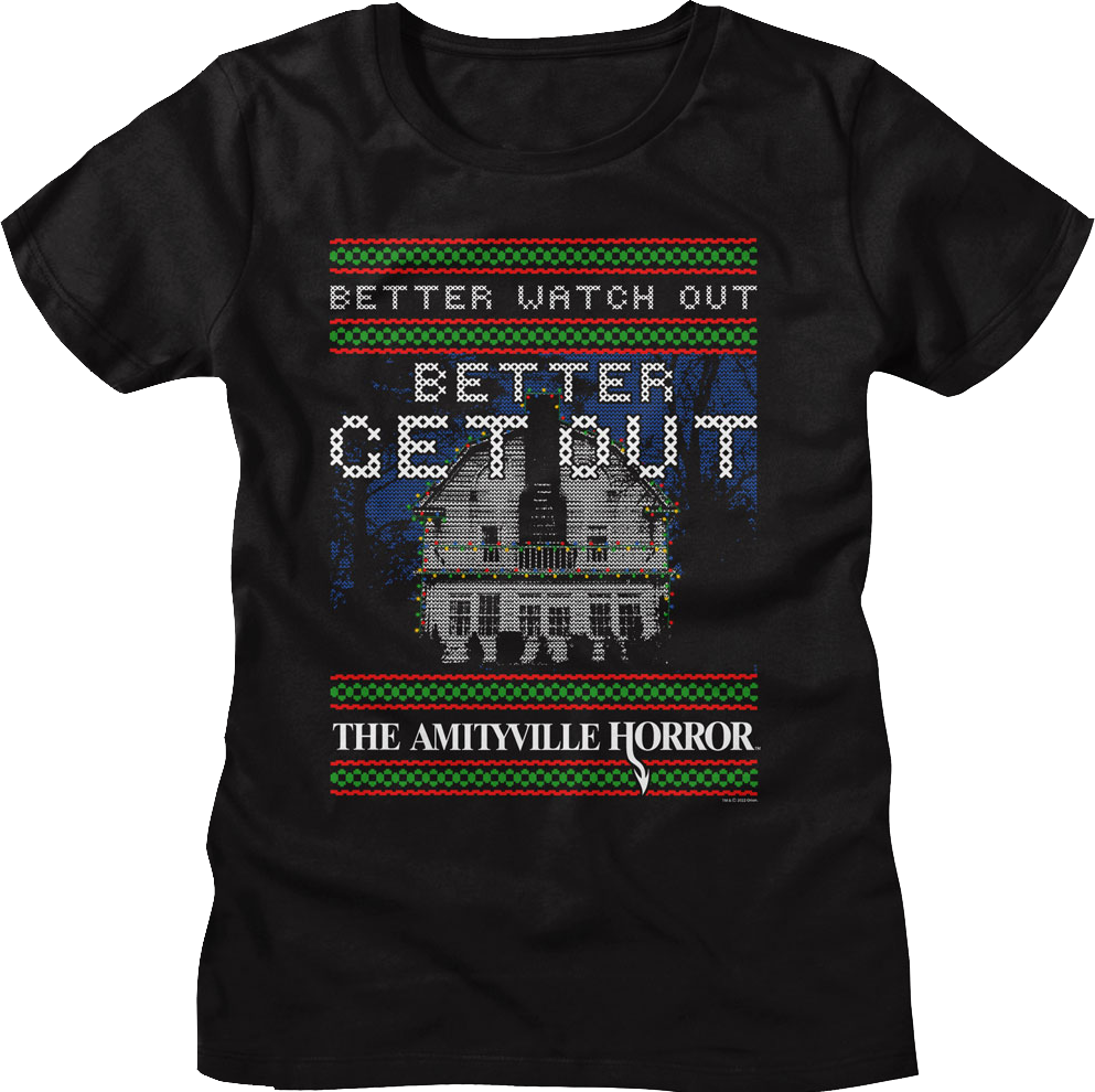 Womens Better Watch Out Faux Ugly Christmas Sweater Amityville Horror Shirt