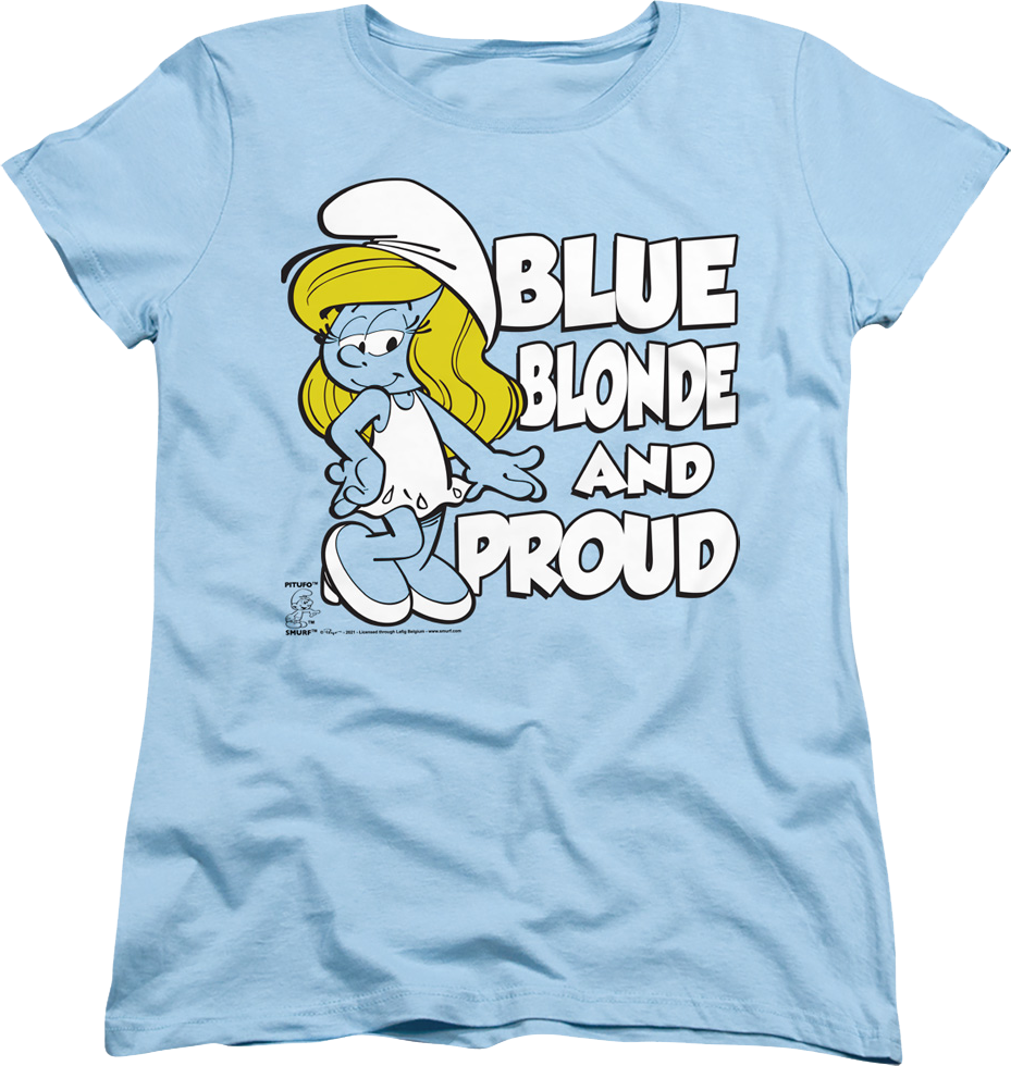 Smurfette is one of the most popular cartoon characters of all time, and everyone will know you are a fan when you wear this Womens Blue Blonde And Proud Smurfs Shirt!