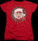 This womens I Love Lucy shirt shows a Christmas wreath around an image of Lucy Richardo dressed up as Santa Claus. Lucy wore this Santa outfit in the flashback episode "The I Love Lucy Christmas Show". Lucy, Ricky, Ethel and Fred all dressed up as Santa to surprise Little Ricky, then realized that the real Santa had joined in on the fun!