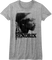 This womens Jimi Hendrix shirt features a black and white profile picture of the legendary musician with his last name in block letters.