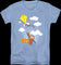 The image on this shirt is inspired by the children's book Curious George Flies a Kite. In the book, George meets a boy named Bill. Bill showed George how to fly a kite, and when George tried to fly the kite, he was taken away with the kite, high up in the sky. The Man in the Yellow Hat had to rescue George in a helicopter. The Margaret Rey book is one of George's greatest adventures.