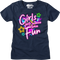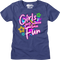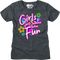 This 80sTees.com exclusive womens shirt features vibrant colors and shapes, and includes the title of the hit song "Girls Just Wanna Have Fun."