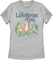 This womens Land Before Time shirt shows Cera, Ducky, Littlefoot, Petrie, Chomper, and Spike on a journey to the Great Valley.