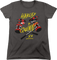 This womens Birds Of Prey shirt shows crossed mallets underneath Harley Quinn's eyes.