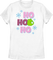 This womens Care Bears shirt shows Good Luck Bear surrounded by snowflakes. The shirt reads "Ho Ho Ho."
