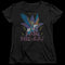 This womens She-Ra shirt shows the Princess of Power on top of her Alicorn, Swift Wind. Both characters are surrounded by colorful stars and lightning bolts. The shirt reads I Am She-Ra!