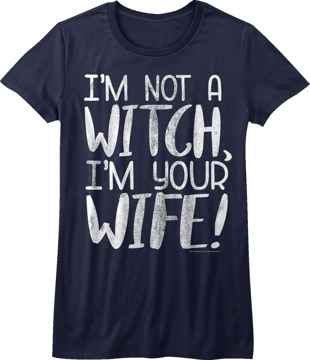 This womens Princess Bride shirt shows Miracle Max's wife Valerie's popular quote "I'm Not A Witch, I'm Your Wife!"