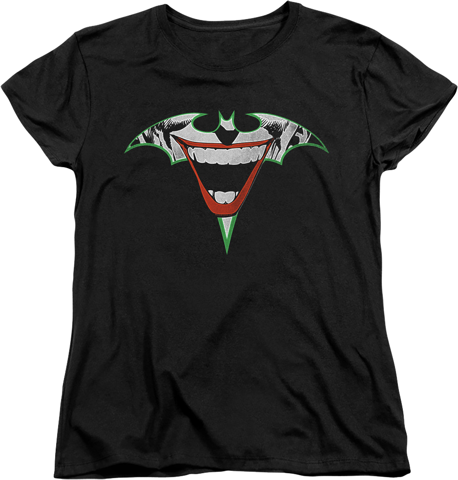 Show everyone that you're a fan of the Clown Prince of Crime with this Womens Joker Bat Symbol DC Comics Shirt!