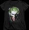 This women's Batman t-shirt features an image of the Dark Knight's arch nemesis, the Joker. The Clown Prince of Crime's face is surrounded by smeared white makeup.