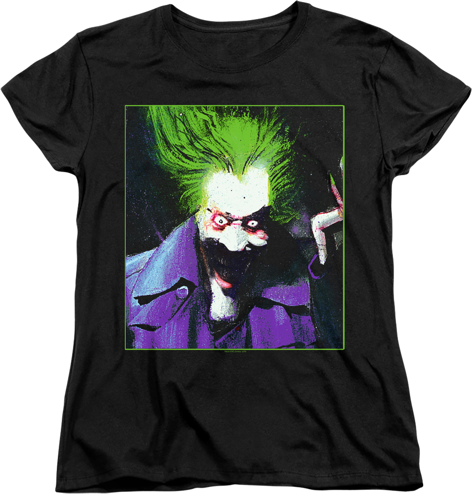 For any fan of the Harlequin of Hate, this Womens Joker Painting DC Comics T-Shirt is a must have!