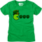 This 80sTees.com exclusive womens shirt features an 8-bit image of an Irish Pac-Man ready to chomp on shamrocks.
