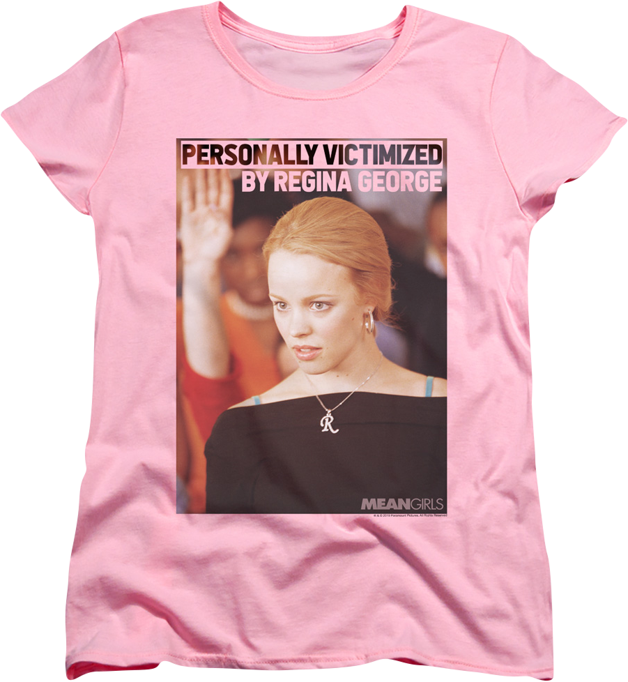 In one of our favorite Mean Girls scenes Ms. Norbury snaps back at Regina saying "That's probably true. How many of you have ever felt personally victimized by Regina George?" All of the students and staff present in the after school workshop raise their hands. Show you're a fan of this epic movie and that sassy scene with this Womens Mean Girls Regina George Shirt.