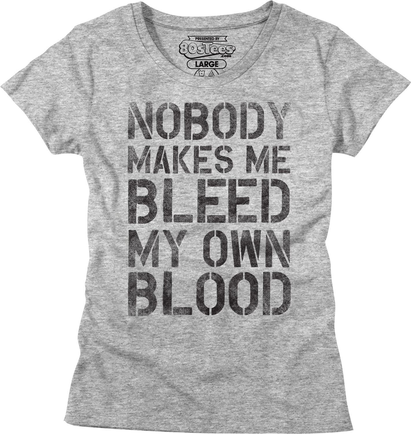 Everyone will immediately know that you are a fan of White Goodman when you wear this 80sTees.com exclusive Womens Nobody Makes Me Bleed My Own Blood Dodgeball Shirt!