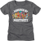 This womens Fraggle Rock shirt shows Wembley, Red, Mokey, Gobo, and Boober singing and celebrating. The shirt reads Powered By Positivity.