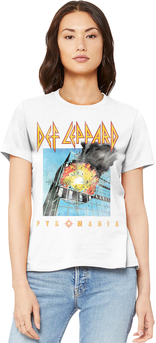 For any fan of the classic 1983 album, this Womens Pyromania Cover Def Leppard Shirt is a must have!