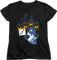 This womens Monopoly shirt shows Rich Uncle Pennybags riding on a small train. The shirt also shows the game board spaces for Reading Railroad, Pennsylvania Railroad, B & O Railroad, and Short Line.
