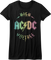 Just when the world needed a new band to light the way for rock music, AC/DC appeared with their debut album High Voltage. This womens AC/DC shirt shows the band's name and the album's title in rainbow colors. In 1976, AC/DC released their hard-rocking debut album, High Voltage. The album's track list includes the instant classics "Live Wire", "T. N. T.", and "It's A Long Way To The Top (If You Wanna Rock 'N' Roll)".