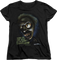 This womens Beetlejuice shirt shows the ghost with the most disguised as a snake. The shirt reads Turn On The Juice And See What Shakes Loose.