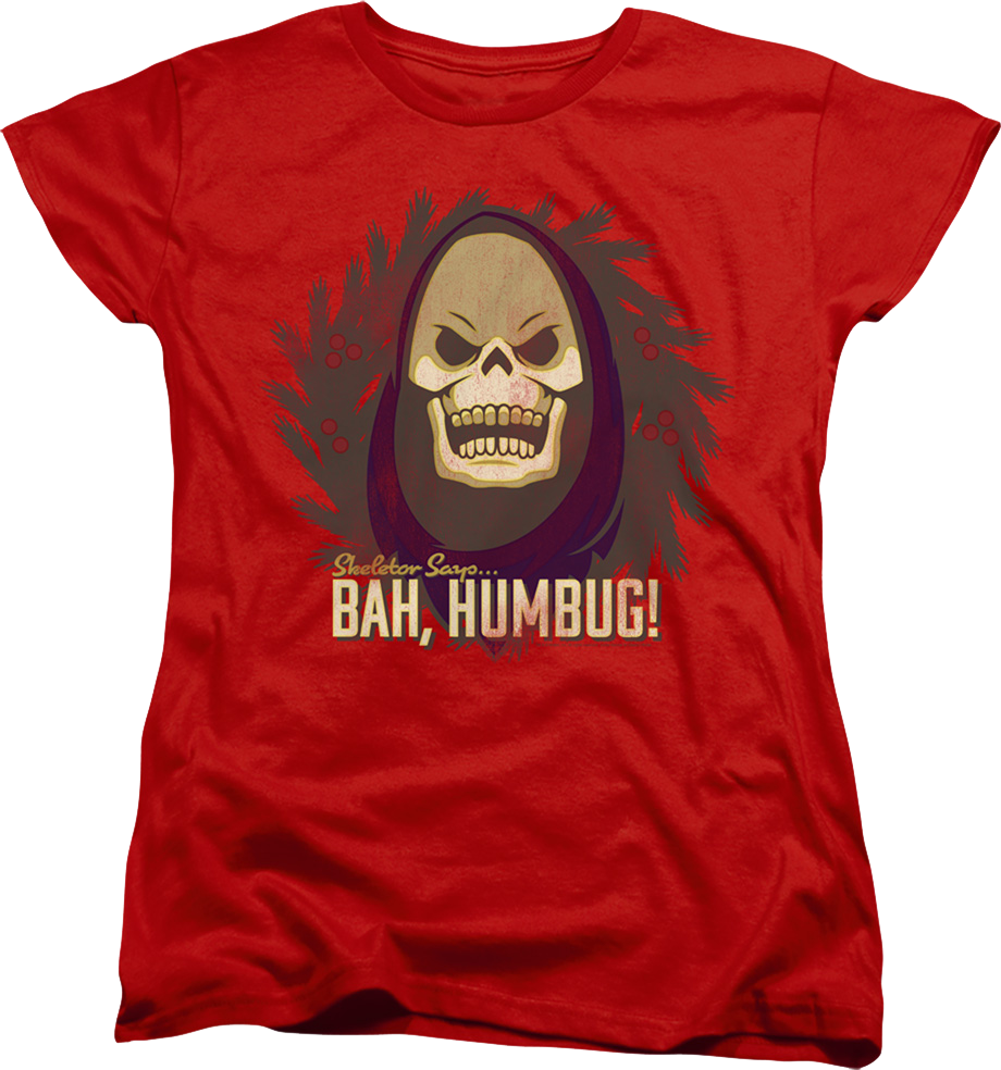 Womens Skeletor Says Bah Humbug Masters of the Universe Shirt