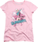 This womens Supergirl shirt shows the last survivor of Krypton's Argo City surrounded by stars and striking a heroic pose.