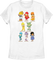 This womens Rainbow Brite shirt features the Color Kids characters Rainbow Brite, Red Butler, Lala Orange, Canary Yellow, Patty O'Green, Buddy Blue, Shy Violet, and Indigo.