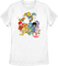 This womens Rainbow Brite shirt shows the iconic cartoon character riding her horse Starlite, and surrounded by friends Red Butler, Canary Yellow, Lala Orange, Patty O'Green, Buddy Blue, Indigo, Shy Violet, and Twink.