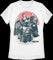 This womens Star Wars shirt features a collage of characters that appeared in The Mandalorian season two episode titled "The Tragedy". The shirt shows Din Djarin, Migs Mayfeld, Cara Dune, Fennec Shand, and Boba Fett.