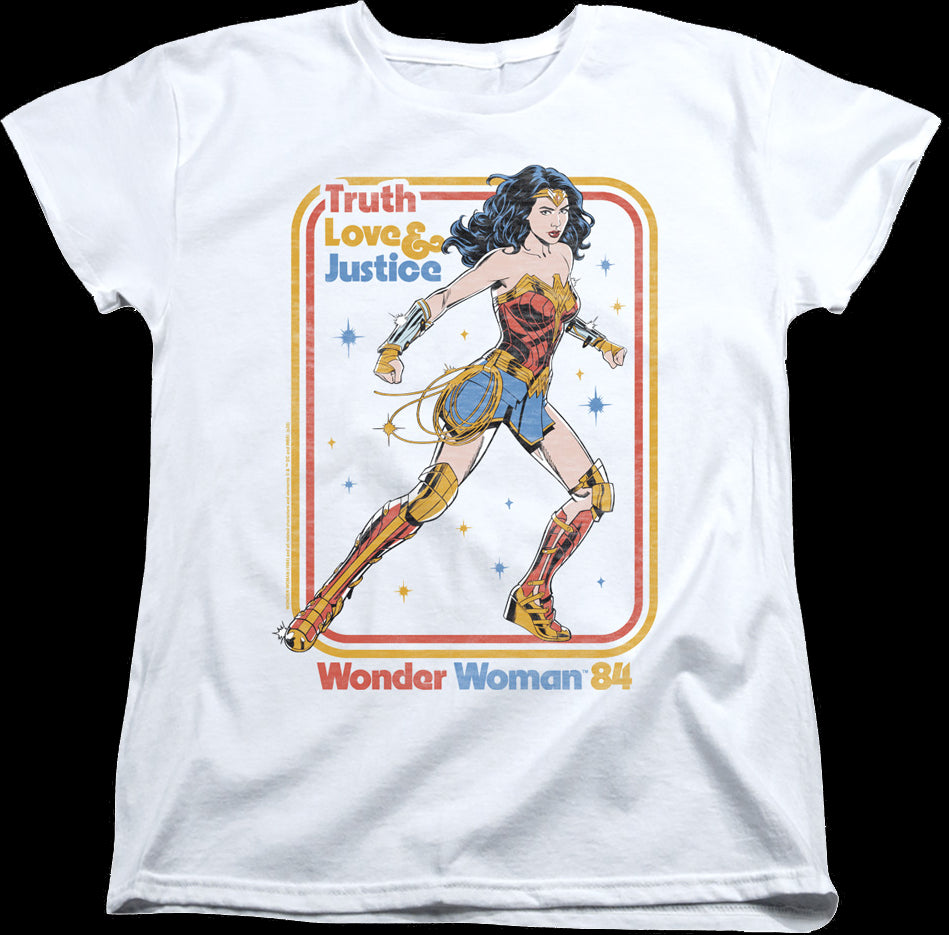 For any fan of the 2020 blockbuster starring Gal Gadot, this Womens Truth Love & Justice Wonder Woman Shirt is a must have!