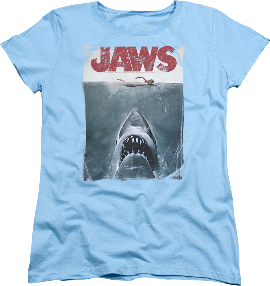 For any fan of the Steven Spielberg classic, this Womens Vintage Movie Poster Jaws Shirt is a must have!
