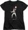 The king of rock and roll and flamboyant stage fashion is shown on this Womens White Jumpsuit Elvis Presley Shirt. He is pictured performing on stage and wearing one of his signature white jumpsuits. Many of his stage fashion was designed by Bill Belew and some featured eagles, Chinese dragons, and phoenixes. No matter which outfit he chose, Elvis always did his best to give audiences the best show that he could.