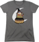 This womens Garfield shirt shows the popular cat dressed as a witch and stirring a Halloween surprise in a large pot placed over an open fire.