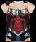 Finally, you don't have to hail from Paradise Island to become Wonder Woman. All you need is this ladies Wonder Woman costume t-shirt to look just like everyone's favorite super heroine. Even if you don't own Bracelets of Submission, you will still be mistaken for the Goddess of Truth because this sublimated shirt is designed to look like the iconic outfit worn by Wonder Woman. For any fan of the amazing Amazon, this Wonder Woman costume t-shirt is a must have.