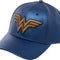 You may not wear a tiara on your head like Wonder Woman, but you can still show that you are a fan of the Amazon warrior princess with this Wonder Woman logo snapback hat! This baseball hat shows an embroidered Wonder Woman logo that is gold and will catch everyone's attention. The back of the hat features Wonder Woman's embroidered name and a snapback that allows you to adjust the hat to your own personal comfort. The hat is made of a blue glitter fabric so you get the shining effects of glitter without the mess it leaves behind. Everyone will immediately know that you are a fan of the most powerful woman in the DC Universe each time you wear this Wonder Woman Logo DC Comics Snapback Hat!