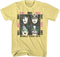 This KISS t-shirt features the cover artwork for the band's 1979 album Dynasty. The artwork shows Paul Stanley as the Starman, Gene Simmons as the Demon, Ace Frehley as the Spaceman, and Peter Criss as the Cat.