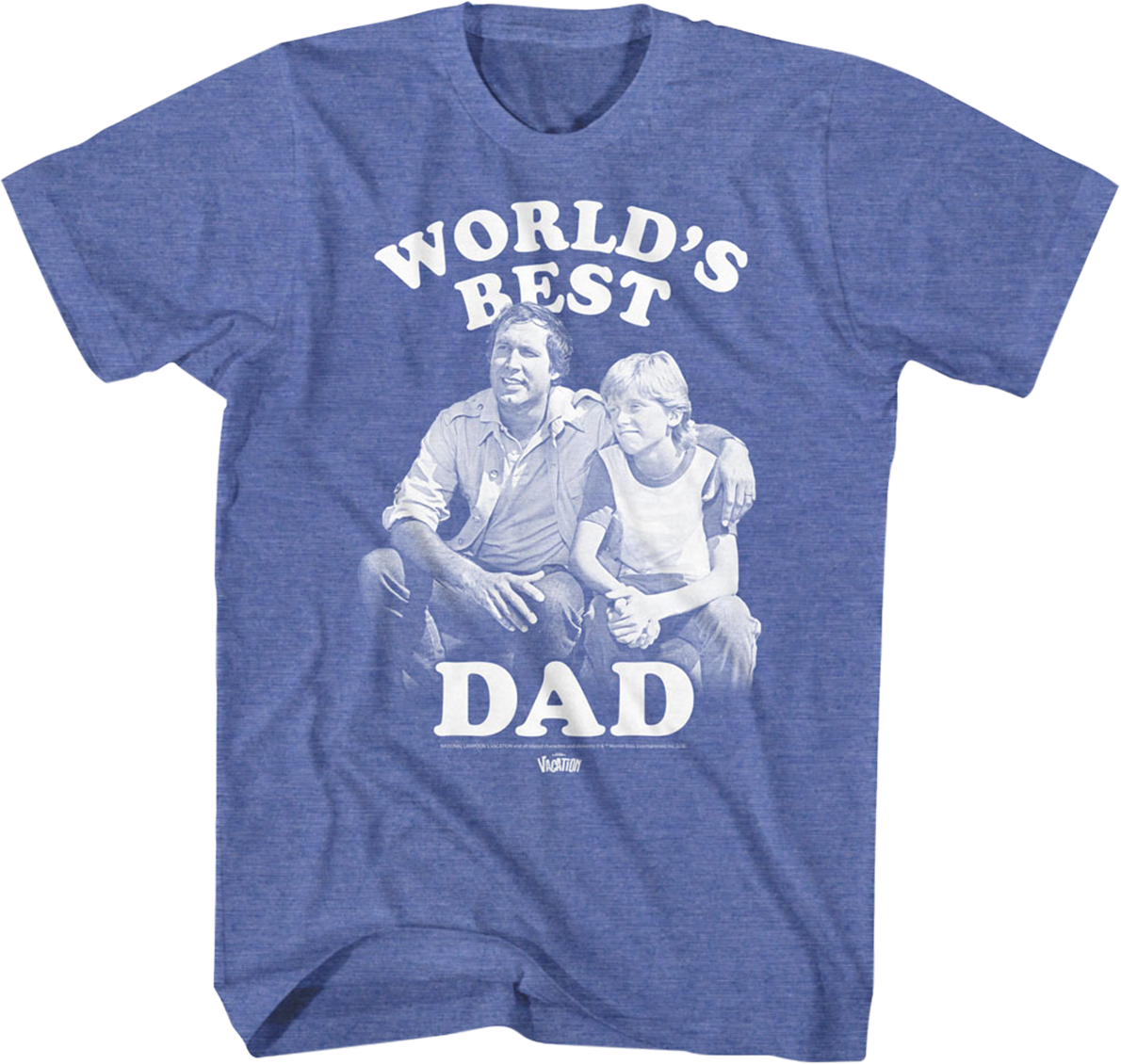 This National Lampoon's Vacation t-shirt shows Clark W. Griswold with his arm around his son, Rusty. The shirt reads World's Best Dad.