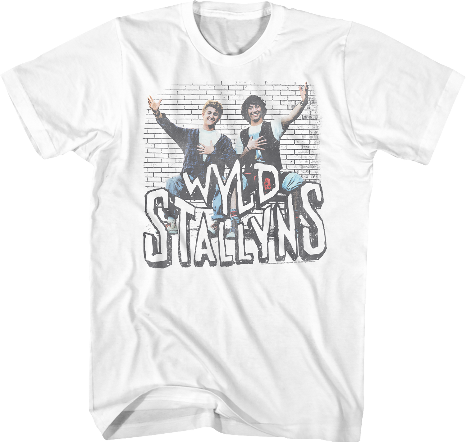 Bill and Ted are the funniest comedy duo in the history of history. Show that you are a fan of the 1989 comedy classic Bill and Ted's Excellent Adventure with this Wyld Stallyns Brick Wall T-Shirt!