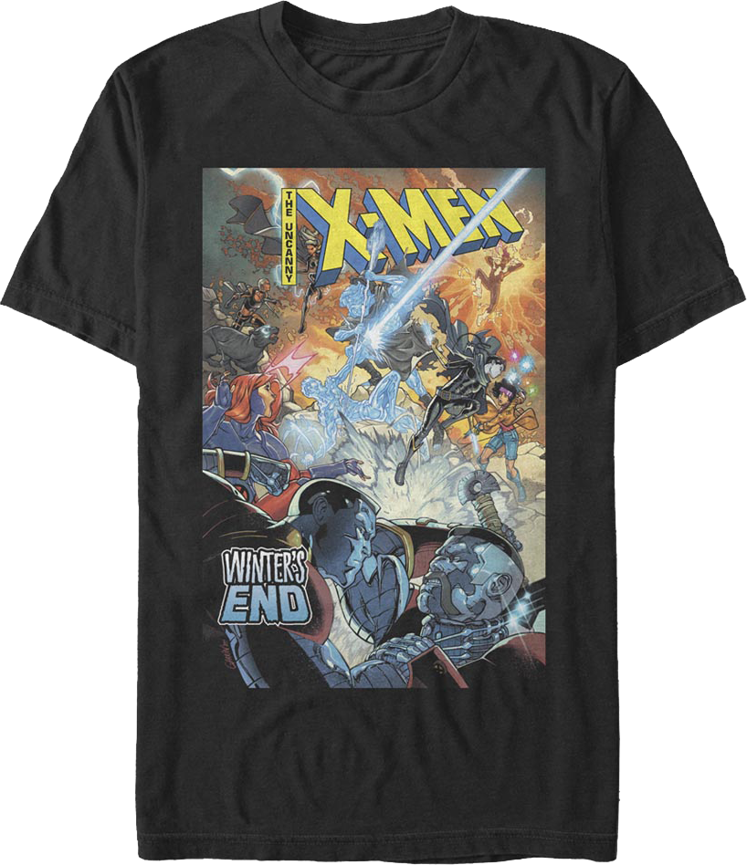 For any fan of the heroic mutants and their exciting comic books, this X-Men Winter's End Marvel Comics T-Shirt is a must have!