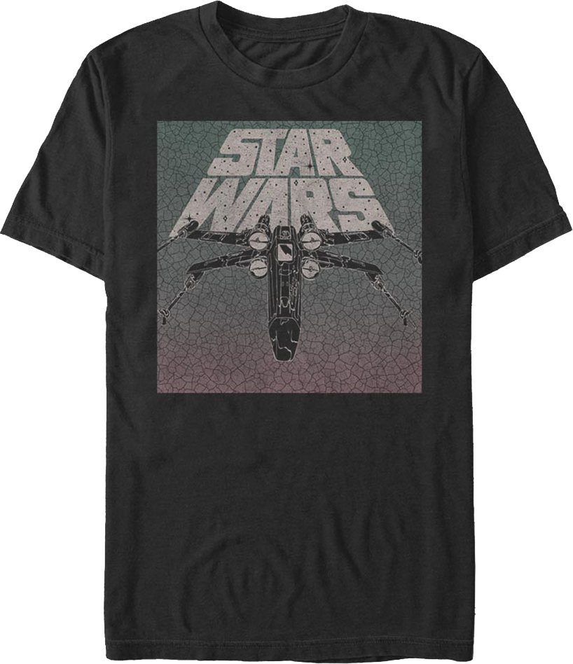 The X-wing starfighter is a symbol of the Rebel Alliance, and everyone will know you are a fan when you wear this X-Wing Poster Star Wars T-Shirt.